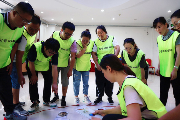 在正式活動之前,教官通過一系列輕快的活動,建立相互信任的和諧團隊氛圍。緊接著在教官的指導下,康科德各成員迅速組成四個小隊,經(jīng)過競選隊長、編排隊名、口號等內(nèi)容搭建,迅速誕生出“科學隊”、“德云坊隊”、“同心同德隊”、“德信隊”四個隊伍。